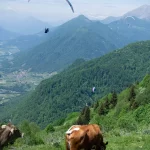 Letenje mi je šlo dobro in gladko, a malo se je zataknilo pred 5. točko, kjer je bilo treba iti zadaj za Čadrg. Na tolminskem Triglavu sva se ujela z Blažem a je bilo razpihano in brez pravega termičnega stebra in se z le 950 m višine hrabro poženeva v tiste grape z še enim pogumnežem. Še tretji dan zaporedoma ena ne najbolj pametna poteza, a k sreči je lepo pihalo v grapo in sem si pri sebi mislil, da mora prijet in da bo termika tam. Dodaten motiv, da se rešimo ven, so bili vedno bolj čudno izgledajoči “pristanki”. Od daleč se kdaj ne vidi električnih žic in naklona, od blizu pač. Uspel sem dobiti nekaj višine, a nato sem šel nizek naprej do obratne točke zavoljo “leading” točk, no, če bi dobil kakšen malo bolj uporaben termičen steber ga bi verjetno tudi zavrtel, če sem pošten. Kaj so “leading” točke? Te točke dobiva pilot, kateri leti v tekmi naprej in je s tem nagrajen za iskanje stebrov, dobrih (in slabih) linij in posledično višje tveganje, običajno je zadaj leteti veliko lažje, saj lahko kopiraš dobre linije pilotov spredaj.